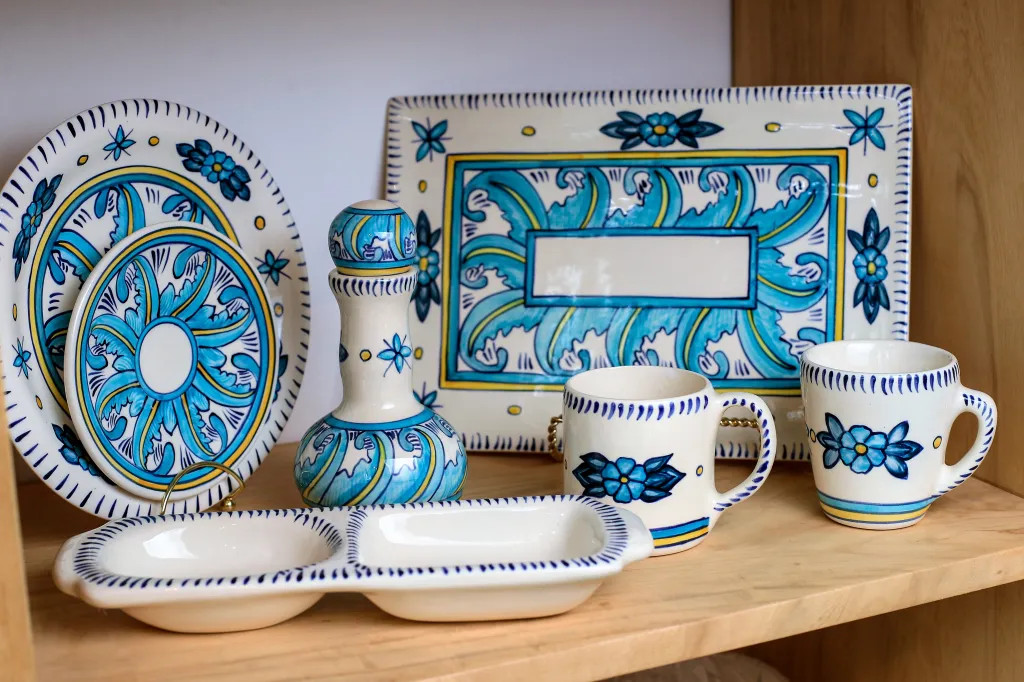 Platos, tazas y decoraciones, todas con diseños que representen la flora y fauna local.