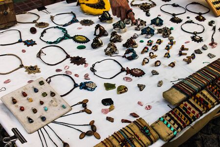 Collares, pulseras y aretes hechos con materiales reciclados o naturales, como semillas, piedras y metales.